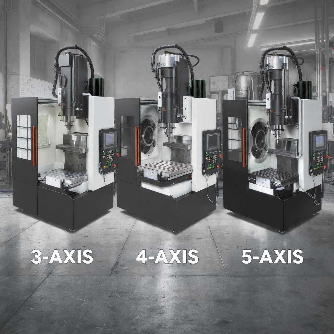 📸 Hình 3: Các loại máy phay CNC (3 – 4 – 5 trục) ứng dụng trong cơ khí hiện đại.