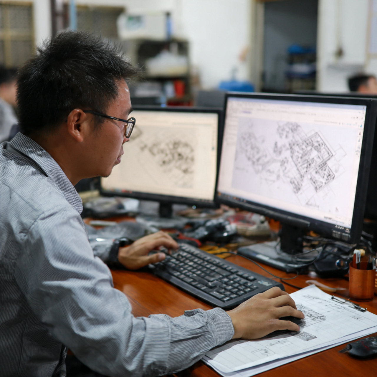 (Hình 2: Kỹ sư Nam Dũng tiếp nhận và phân tích bản vẽ 3D của khách hàng)