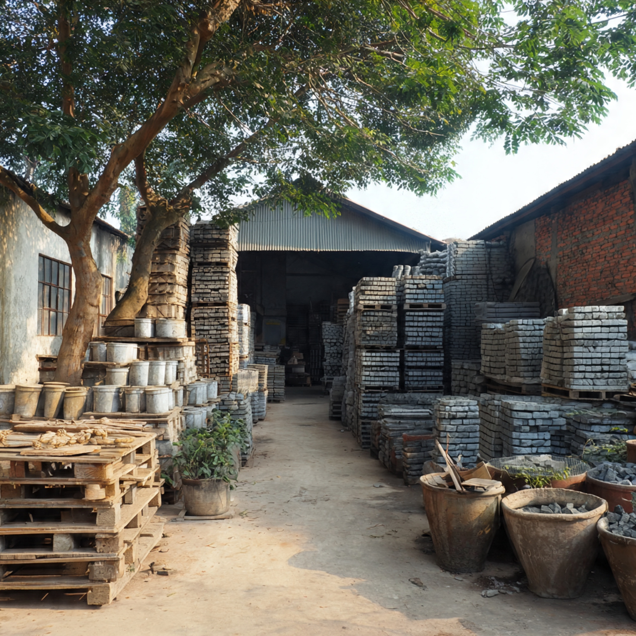 (Hình 3: Khu vực lưu trữ và phân loại vật liệu tại xưởng Nam Dũng)